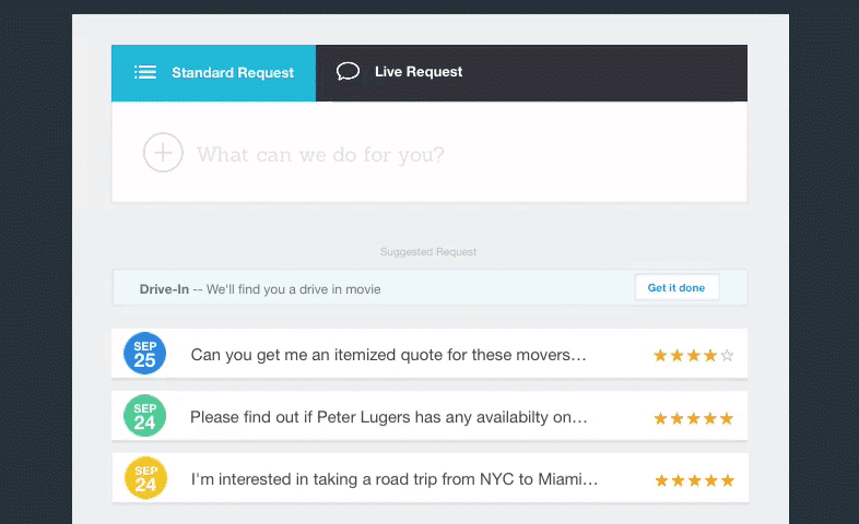 Live requests will connect you with an assistant via SMS Text or web chat. Once you're connected, you'll be able to chat in realtime.